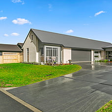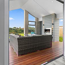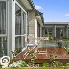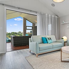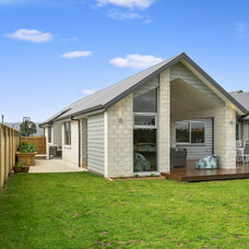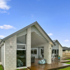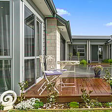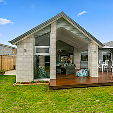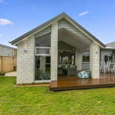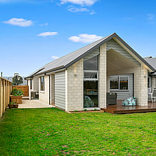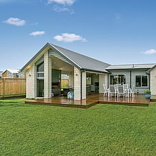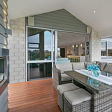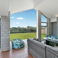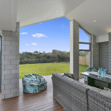 The layout means plenty of natural light with views to Mt Pirongia across the tree-lined gully. A simple plan and clean lines also create easy flow to outdoor living. A shaded portico promises year-round use.